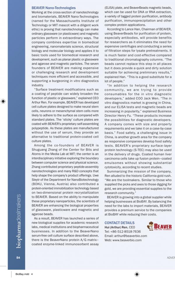 2014年3月,世界知名科學(xué)雜志《自然》(Nature)子刊——Nature Biotechnology (volume 32 no. 2 february 2014) 、Nature Reviews Drug Discovery (february 2014 volume 13 no.2) 對蘇州生物納米園(Biobay)以及公司首席基因研發(fā)工程師賴增楊進(jìn)行了專題報道,海貍公司作為納米園創(chuàng)新型生物醫(yī)藥企業(yè),以其強大、專業(yè)的研發(fā)團(tuán)隊、國際領(lǐng)先的核心技術(shù)、可靠的產(chǎn)品品質(zhì)保障,有幸接到邀請,并接受了Nature雜志的專訪。