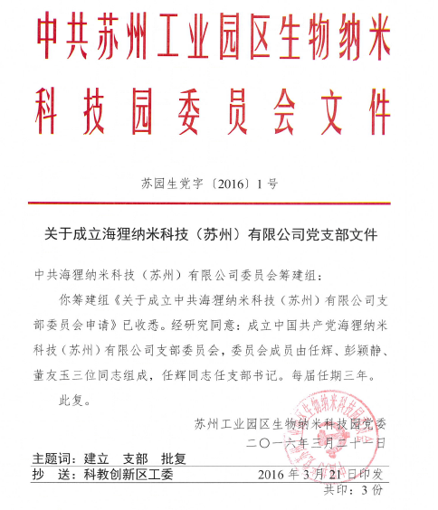 中國共產(chǎn)黨從誕生到今天,已經(jīng)走過了95年波瀾壯闊的奮斗歷程,蘇州作為一片有著光榮革命傳統(tǒng)的熱土,在黨的領(lǐng)導下也發(fā)生了翻天覆地的變化。今年是“十三五”開局之年,也是推進供給側(cè)結(jié)構(gòu)性改革的攻堅之年,創(chuàng)新實干將是蘇州發(fā)展的新基調(diào)。海貍納米科技正是海歸黨員任輝響應國家創(chuàng)新實干的號召回國創(chuàng)辦的高科技創(chuàng)新企業(yè)。公司創(chuàng)建之初不到10個人創(chuàng)業(yè)團隊中,有6人是共產(chǎn)黨員,經(jīng)過5年的發(fā)展,海貍在今年初獲得了建立黨支部的批復,目前公司黨員人員數(shù)已占到總?cè)藬?shù)的30%。