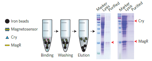 圖1. 利用海貍磁珠(BEAVER,70301)捕獲Cry和MagR實(shí)驗(yàn)過(guò)程及效果。
